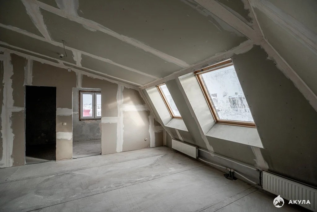 Это действительно романтичная мансарда для энергичных людей — последний этаж без лифта. Просторная, все комнаты от 30 м, и очень светлая. Много окон воздуха и света. В сочетании с высокими потолками получается очень хороший объем — такую квартиру еще поискать надо. Планировка включает в себя гостеприимный холл с ванной комнатой для гостей при входе, просторную кухню-гостиную, две большие детские комнаты со своей ванной комнатой 9 м и мастер-спальню родителей со своей ванной комнатой и гардеробной или кабинетом — все продуманно и на своих местах.