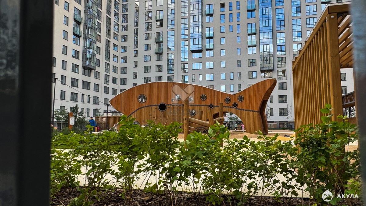 Игровые зоны, спортивные комплексы, столики и тихие зоны для родителей. Часть дворов — на стилобате: сухо, светло, безопасно.