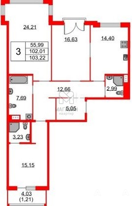 - Пространство в квартире свободное - межкомнатные стены не смонтированы для вашего удобства и разработки своего дизайн-проекта