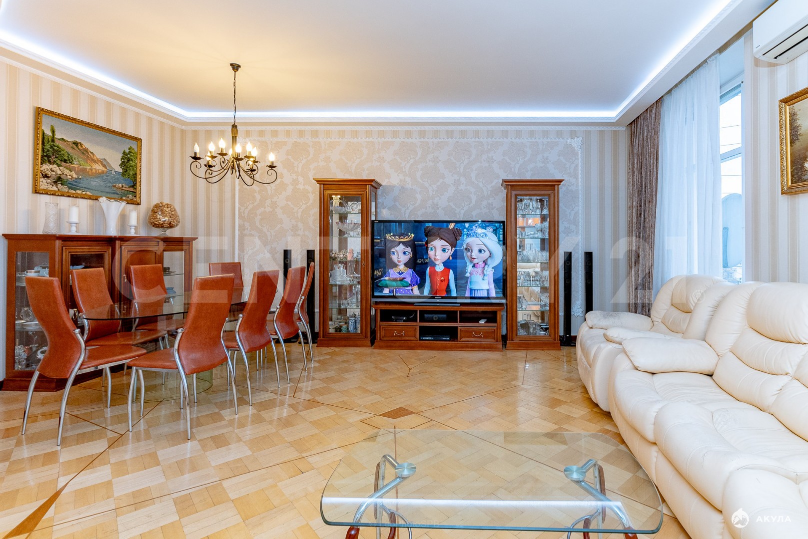 Представляем вашему вниманию изысканную трёхкомнатную квартиру, которая воплощает в себе комфорт и элегантность. Её просторная площадь в 130, 5 кв. м слоган свободы и уюта. Вид из олкон отрывается на на одно из главных культурных символов города — Национальную библиотеку.