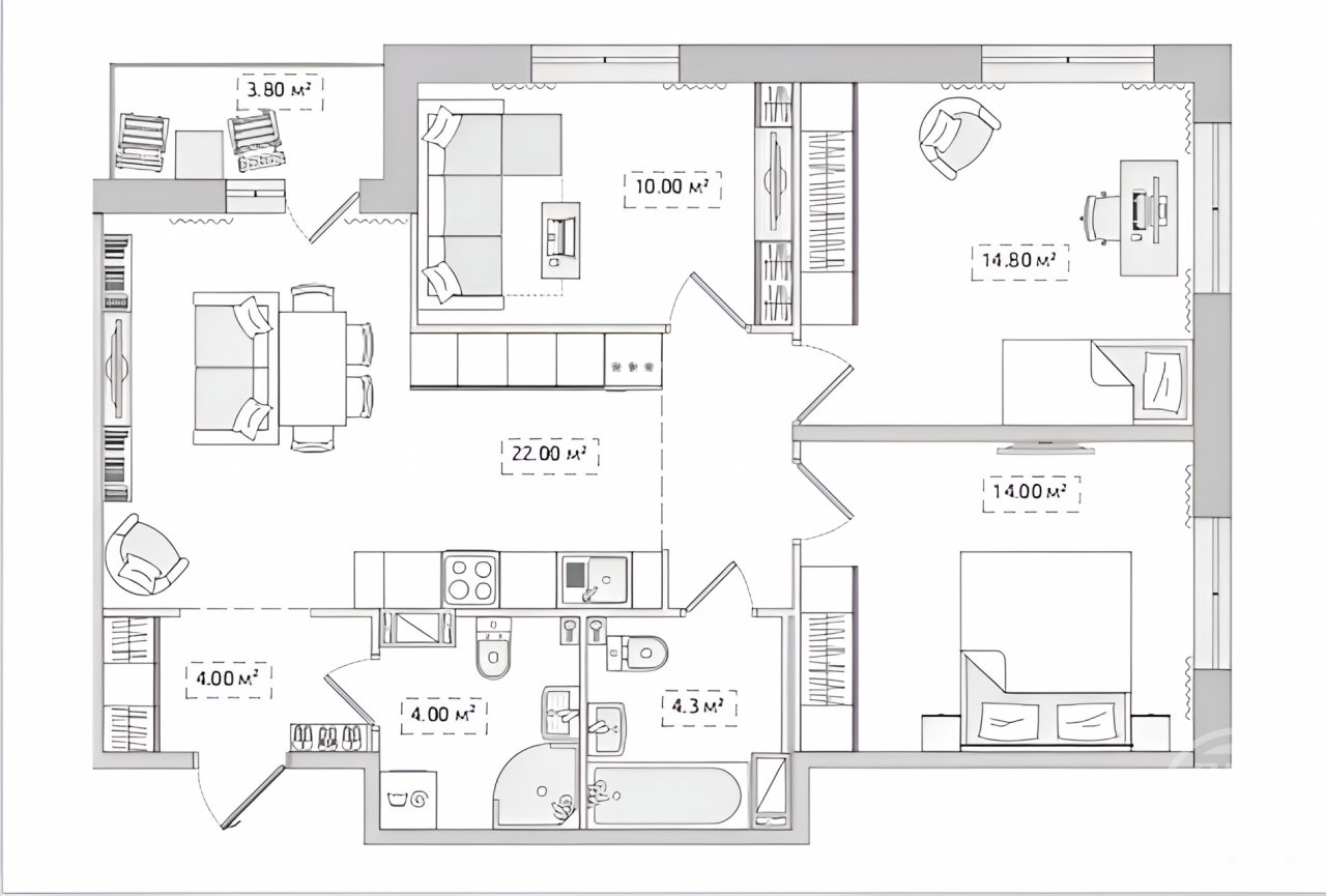 №343159 Просторная трехкомнатная квартира в ЖК бизнес-класса
