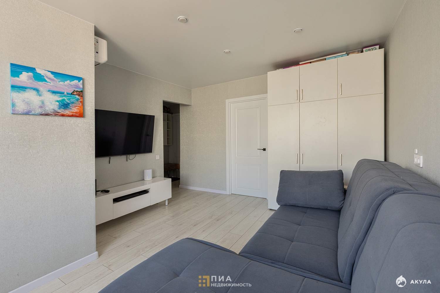Просторная гостиная 15, 3 метра и две изолированные комнаты. Есть гардеробная-кладовая.
