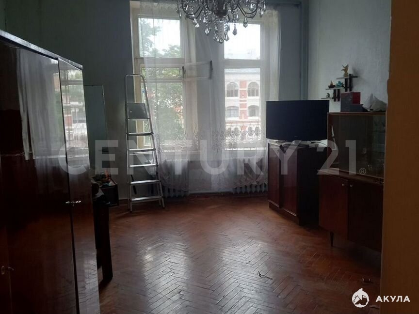 Особенная квартира:3-х комнатная квартира, и ещё 2 изолированных помещения (можно сделать гардеробную и места хранения), требует ремонта;Уникальная зелёная лепка на потолке, наборный паркет;Четыре окна выходят на простор Большого проспекта ВО с панорамным видом на кроны деревьев.