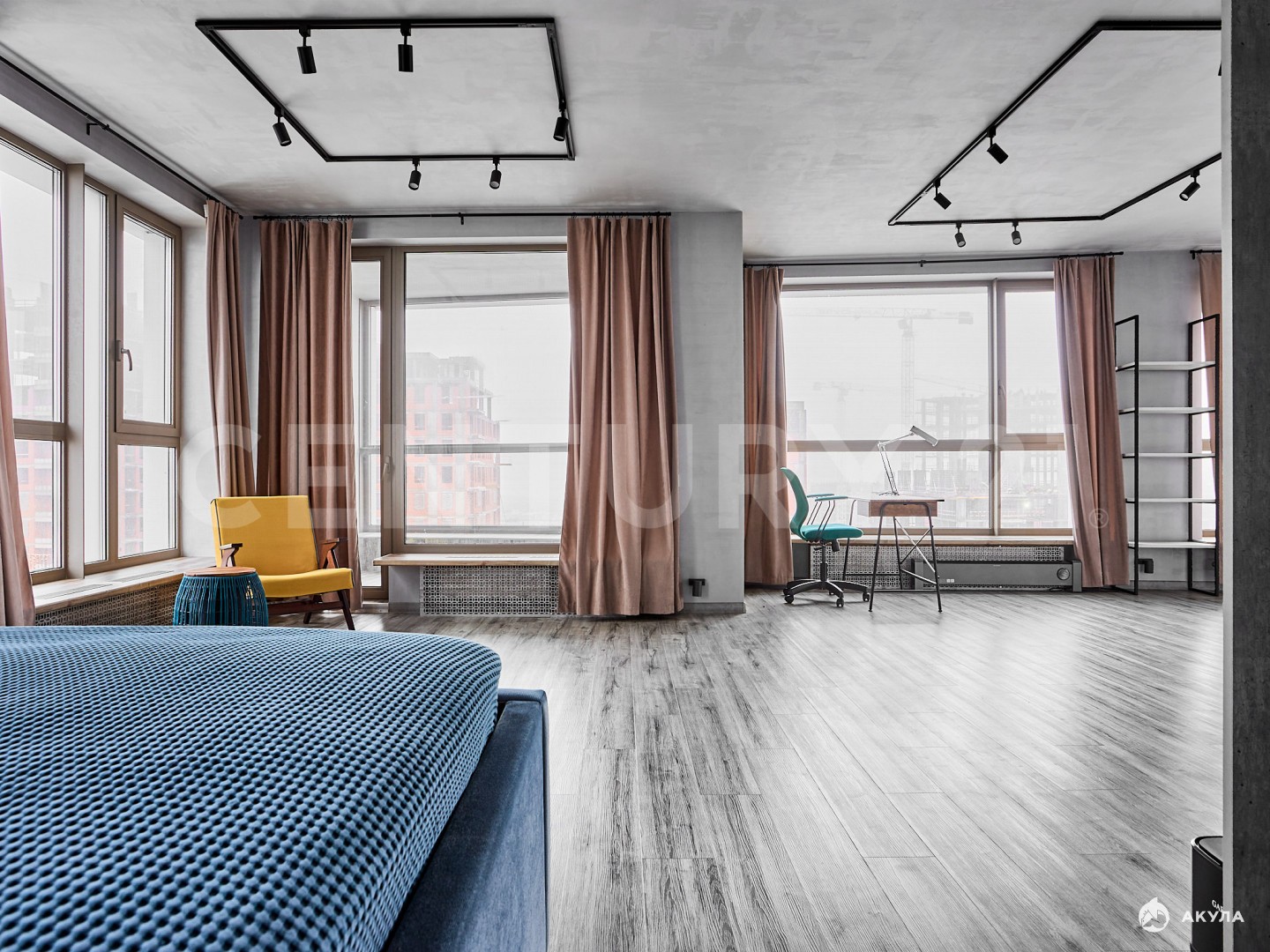 Эксклюзивная видовая квартира бизнес-класса площадью 95 м² с уникальной трехсторонней планировкой.Интерьер выполнен в современном стиле лофт с дизайнерским ремонтом премиального уровня.