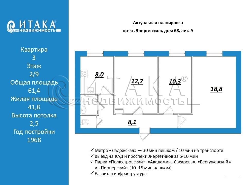 Квартира 61, 4 кв.м на 2 этаже. Светлая, тёплая, окна на восток. Недавно сделали капремонт фасадов и косметику в подъездах (ежедневная уборка). Полы — паркет, сантехника в порядке, санузел в кафеле.