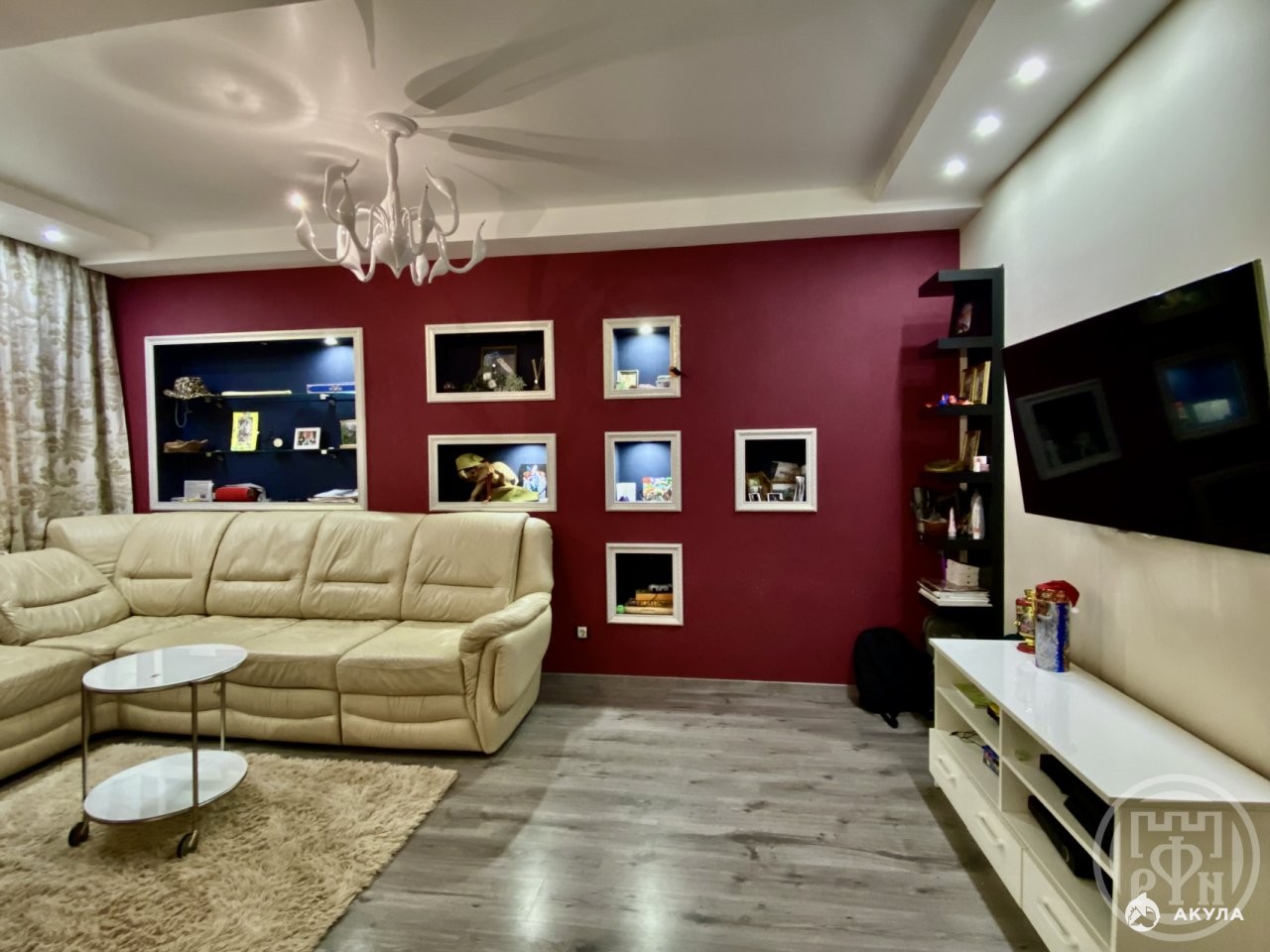Просторная кухня- гостинная 32.2 кв.м., комнаты 18.7 кв.м, и 16 кв.м., два просторных гардероба.