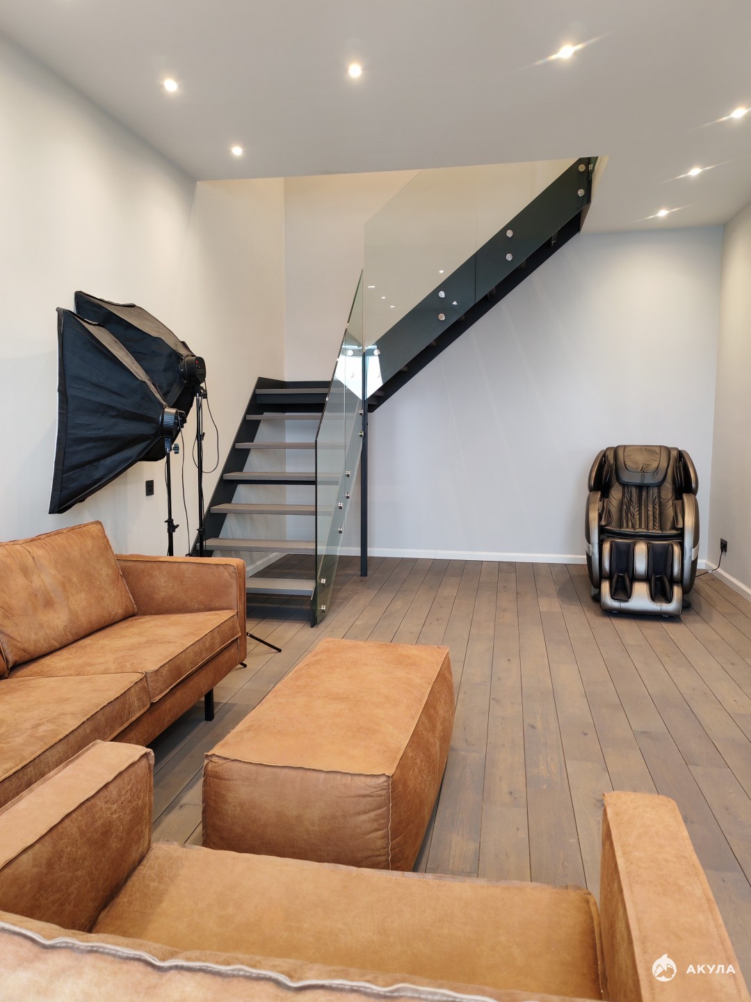 Размещение кабинета на втором уровне изолирует рабочую зону от бытовых шумов т.к.по всему периметру квартиры сделана шумоизоляция.