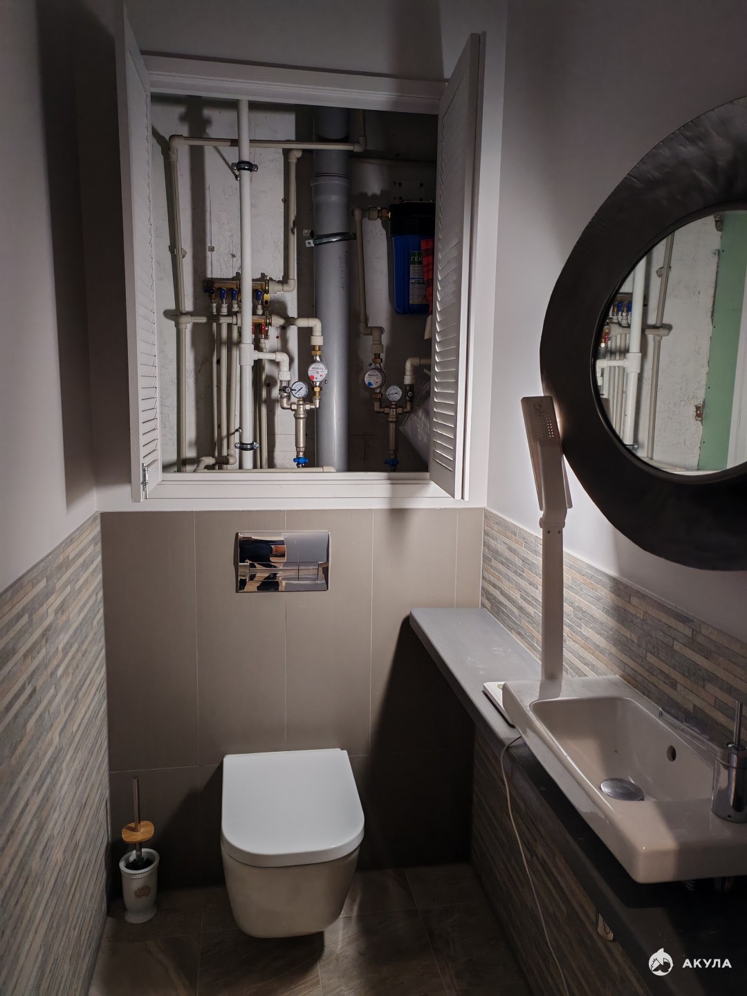 Вдоль балконных блоков установлена плинтусная система отопления, которая создает тепловой экран и равномерно прогревает стены.
