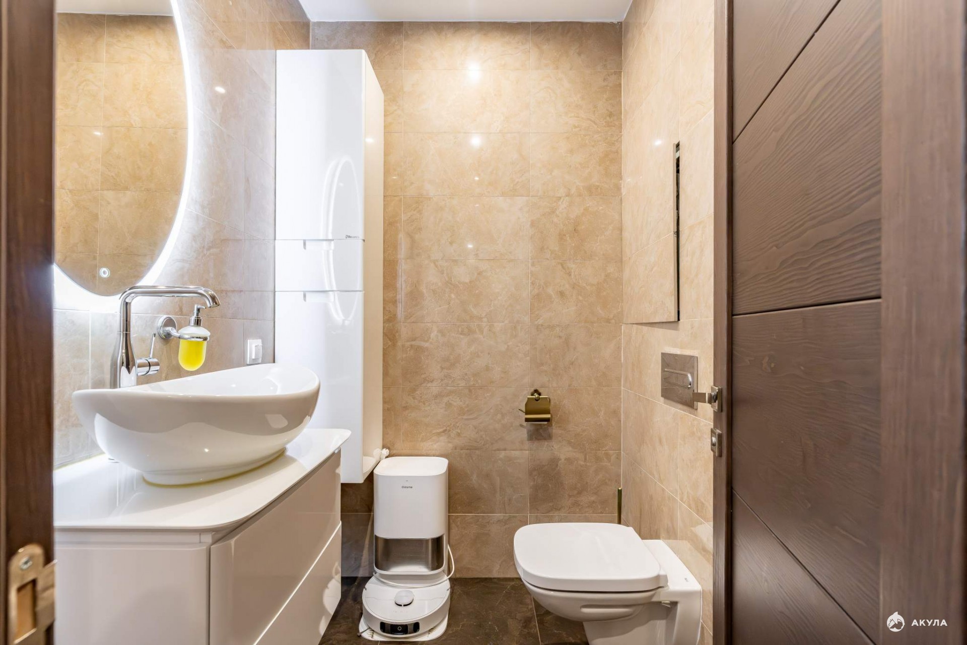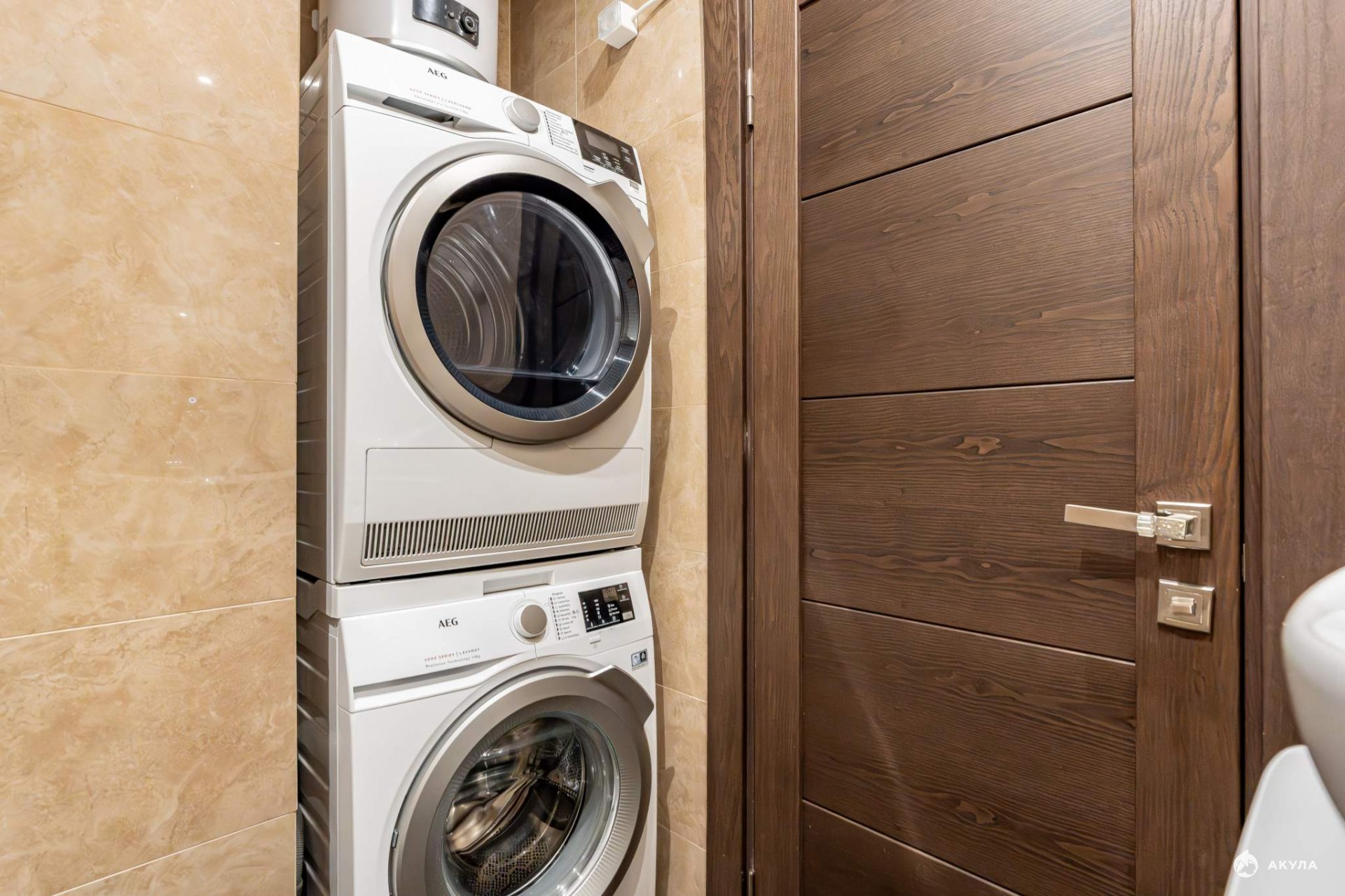 В санузле — стиральная и сушильная машины.