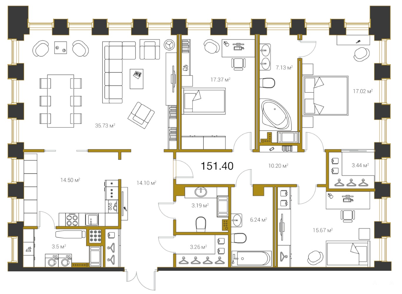 Премиум-класс с новыми традициями своего сегмента. Мягкое свечение золота в отражении зеркал, легкий перезвон хрустальных подвесок, богатый рисунок камня на стенах и теплый свет оникса. Свет, струящийся из высоких окон, блики солнца на ажурном орнаменте, глубокий, темный, драматичный бархат мебели. Сдержанная интеллигентная роскошь Ар-деко. Элегантный шик, вписанный в границы хорошего вкуса.