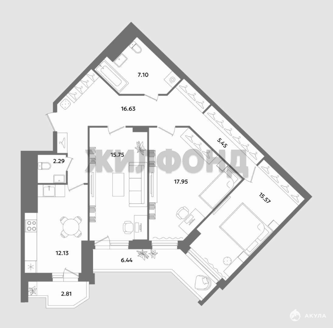 Площадь- 103 кв.м. . Площадь кухни- 12.13 кв.м. . Площадь лоджий- 9.90 кв.м. .