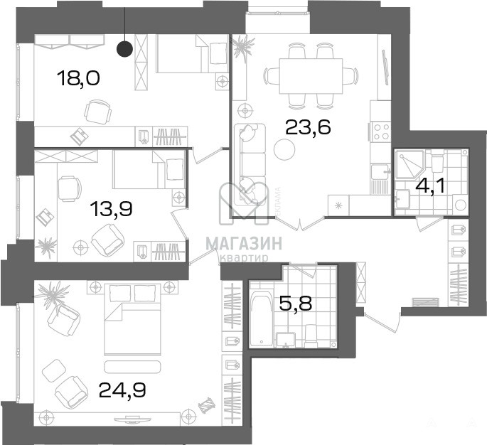 - 23.6 м²
