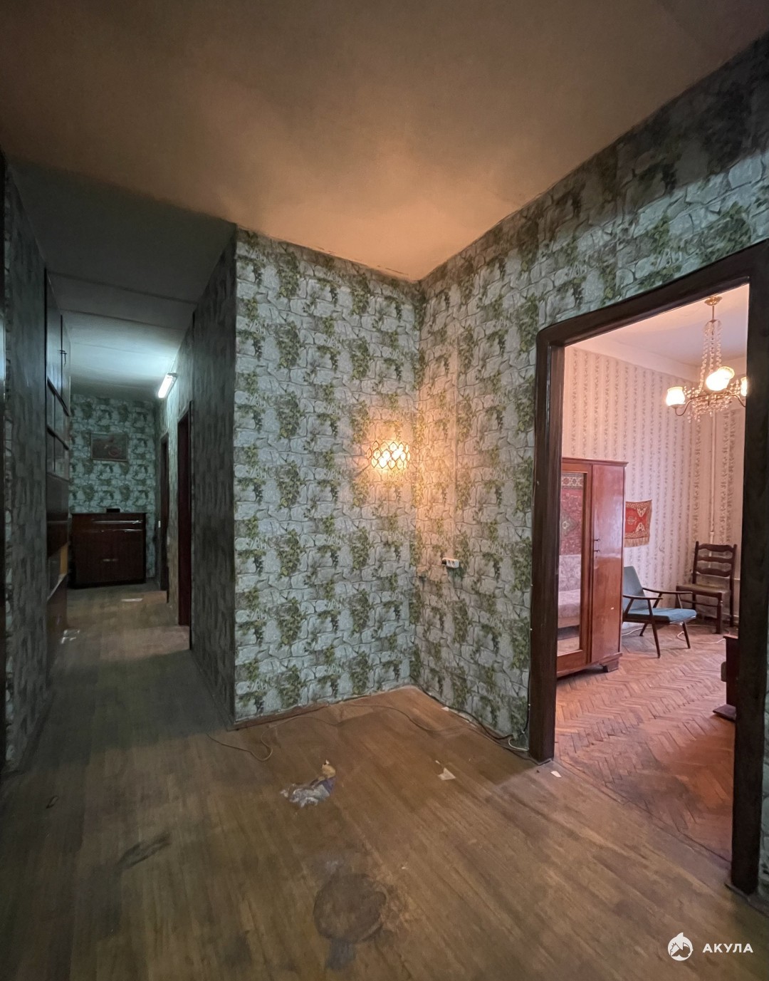 Квартира светлая, просторная, комнаты изолированные (9, 4 +19, 0+13, 4 кв.м), высота потолков 3, 5 м. Имеется множество мест хранения. Требуется ремонт.