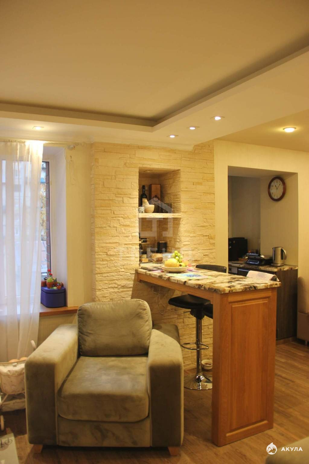 Дом - кирпичный, 2008 года постройки, 14 этажей. В подъезде - пассажирский и грузовой лифты, пандус, безупречное содержание. Ремонт евро, но сделан душой дизайнера. Смольный собор через мост.