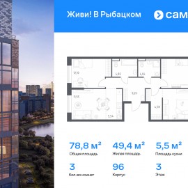 Строим кварталы для жизни с заботой о будущем. Предлагается 3-комнатная квартира комфорт-класса 78, 83 кв.м в корпусе 96 на 3 этаже, в ЖК «Живи! В Рыбацком» Квартира с чистовой отделкой. Доступность дополнительных опций уточняйте у застройщика. Приобрести квартиру возможно по...