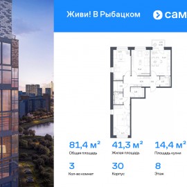 Строим кварталы для жизни с заботой о будущем. Предлагается 3-комнатная квартира комфорт-класса 81, 41 кв.м в корпусе 30 на 8 этаже, в ЖК «Живи! В Рыбацком» Квартира с чистовой отделкой. Доступность дополнительных опций уточняйте у застройщика. Приобрести квартиру возможно по...