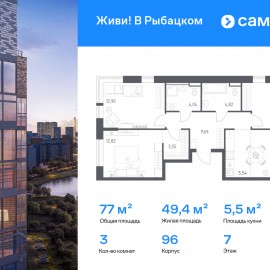 Строим кварталы для жизни с заботой о будущем. Предлагается 3-комнатная квартира комфорт-класса 77, 12 кв.м в корпусе 96 на 10 этаже, в ЖК «Живи! В Рыбацком» Квартира с чистовой отделкой. Доступность дополнительных опций уточняйте у застройщика. Приобрести квартиру возможно по...