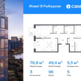 Строим кварталы для жизни с заботой о будущем. Предлагается 3-комнатная квартира комфорт-класса 78, 83 кв.м в корпусе 96 на 5 этаже, в ЖК «Живи! В Рыбацком» Квартира с чистовой отделкой. Доступность дополнительных опций уточняйте у застройщика. Приобрести квартиру возможно по...