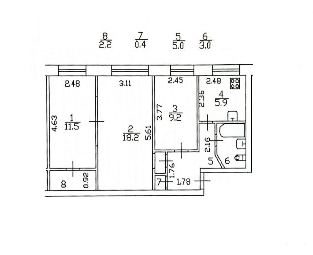- Комнаты: 9, 2+(18, 2+11, 5) кв.м.