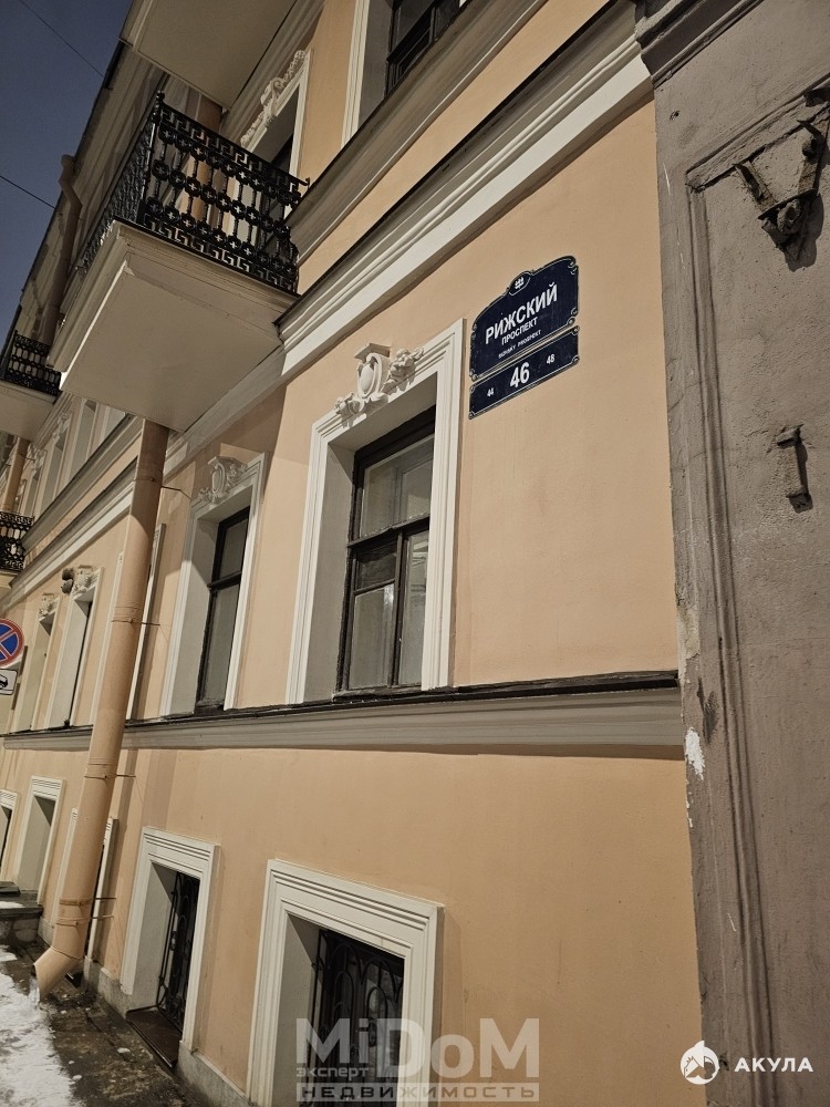Дом 1895 года постройки, в 2024 году сделан капитальный ремон фасада, отреставрирован балкон и ограждение. Окна выходят на Рижский проспект. Квартира 73, 9 кв метра, три комнаты 21, 4+12, 8+17, 6 и кухня 13, 8, ремонт требуется, есть возможность сделать перепланировку. Развитая инфраструктура: рядом поликлиника им. Пирогова, спортивная школа №1, магазины, школы, рестораны, удобный выезд на ЗСД.