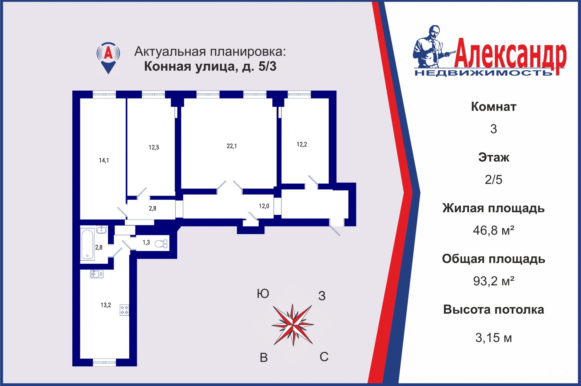 1702838 Сказочная квартира ищет новую семью! Вашему вниманию прекрасный вариант в шикарном месте: отличное предложение на рынке трехкомнатных квартир в историческом центре Санкт-Петербурга! Доходный дом построен российским архитектором Оскаром Иосифовичем Тибо-Бриньолем в 1883 г., расположен в Центральном районе СПб, недалеко от Александро-Невской лавры и Троицкого собора. Удачное расположение дома, в пешей доступности от двух станций метро: площадь Восстания и площадь Александра Невского. Дом кирпичный, очень теплый. Квартира расположена на 2 этаже 5 этажного дома, имеет общую площадь 93, 2 кв. метра, все комнаты изолированные (12, 2+22, 1+12, 5), окна выходят в Тележный переулок, на пешеходную зону. На плане квартиры и фотографиях Вы можете увидеть, что у нас по факту есть и четвертая комната (14, 1 кв. метр), которая по документам идет как кладовая. При желании ее можно объединить с прилегающей комнатой и сделать просторную комнату с двумя окнами. На первом этаже дома находится коммерческое помещение, что позволяет собственнику сделать перепланировку и при желании поменять местами мокрые зоны, и в дальнейшем официально согласовать перепланировку. Интерес для нового собственника может представить старинная печь в одной из комнат, которая сохранилась со времен постройки дома. Печь в рабочем состоянии. Кухня имеет хороший метраж - 13, 2 кв. метра, полностью обустроена мебелью, окно выходит в закрытый двор, на противоположную сторону. Bыcoта потолков 3, 15 м, санузел раздельный. В квартире произведен качественный современный ремонт, полностью заменена электропроводка, трубы, стояки, батареи, в коридоре и на кухне выровнены полы. Квартира очень комфортная, светлая, ухоженная, в ней приятно находиться! Вход в парадную с Тележного переулка. На первом этаже дома расположен магазин "Мир шитья". У нас прямая продажа, более 10 лет в собственности, без перепланировок - подходим под ипотеку любого банка, полная стоимость в договоре, без обременений и долгов, материнский капитал не использовался на приобретение, один собственник, быстрый выход на сделку. Звоните, оперативно согласуем просмотр, все покажем и расскажем. В шаговой доступности располагаются Митрополичий сад Александро-Невской лавры и Овсянниковский сад для прогулок. Инфраструктура богатая: в микрорайоне большое количество прекрасных школ, гимназий, детских садов, домов творчества и других учреждений для удобства жизни. В пешей доступности музеи, театры, исторически значимые места, кафе, рестораны, магазины, набережная Невы - это счастливая жизнь в комфортных условиях!