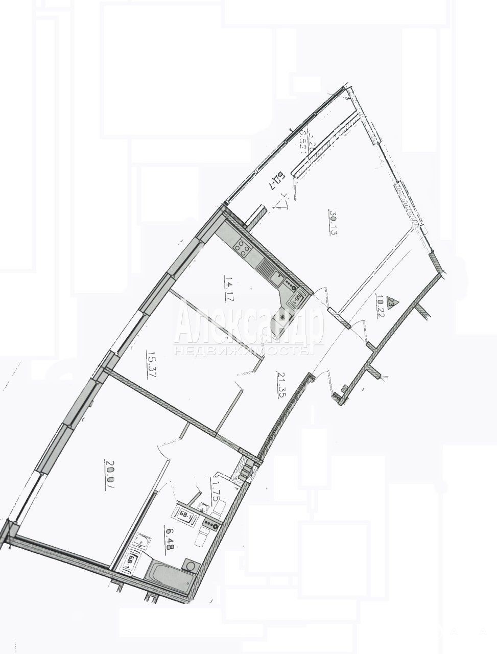 1706397 Предлагается к продаже квартира с тремя изолированными комнатами и машиноместом в подземном паркинге в современном ЖК "Невский триумф" от известного застройщика "Отделстрой".