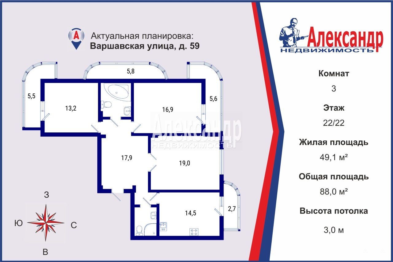 1704899 Предлагается к продаже 3 комнатная квартира в престижном районе Санкт-Петербурга с 2-мя спальнями, просторной залой, большой кухней и колоссальной прихожей. Два санузла. Один с душевой кабиной. Второй с шикарным джакузи. Общая площадь 88 м², высота потолков 3, 0 м. Квартира продается без мебели.