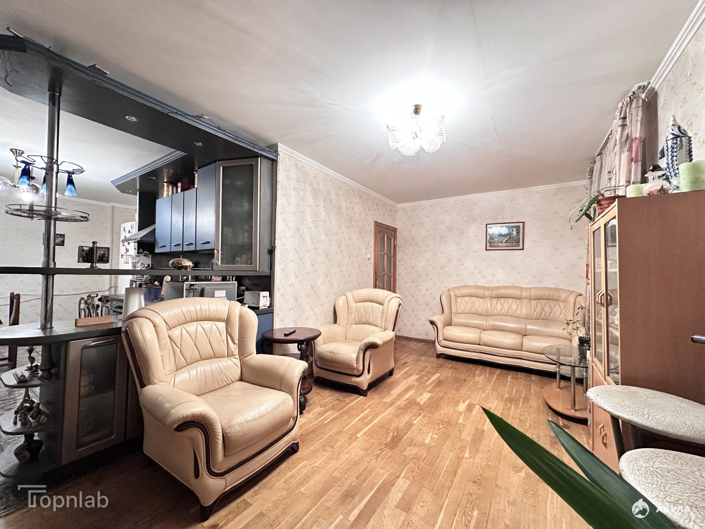 В квартире была выполнена небольшая перепланировка, что сделало её ещё более комфортной и вместительной. В результате мы имеем кухню-гостиную и две изолированные комнаты, из каждой из которых есть выход на балкон.
