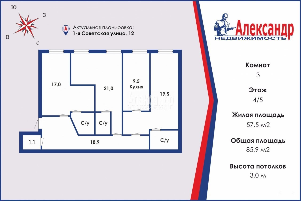 Продается трехкомнатная квартира в самом популярном месте исторического центра Санкт-Петербурга , `пл. Восстания`. Квартира в красивом доме 1899 года постройки, в архитектурном стиле Эклектика с продуманной эргономичной планировкой, как для жизни, так и для получения дохода и инвестиций.