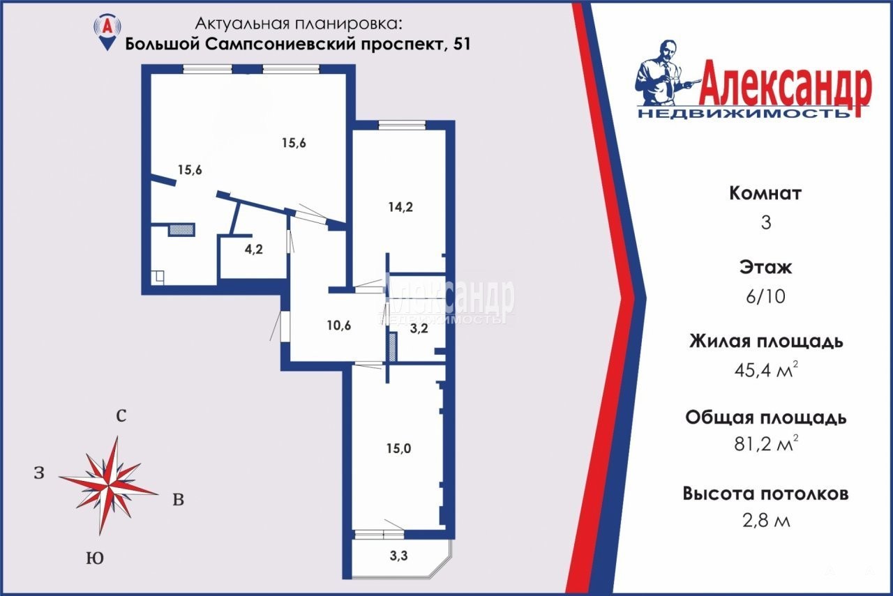 1696461 Уютная квартира для требовательных хозяев в 5-ти мин. от м. `Выборгская`.