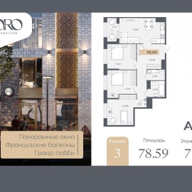 Продается трехкомнатная квартира от застройщика с отделкой в ЖК "ORO by Akvilon" на 7 этаже. Общая площадь: 78.59 кв.м., жилая: 35.39 кв.м., площадь просторной кухни-столовой: 17.89 кв.м. Комнаты изолированные, все окна выходят на одну сторону. В квартире одна лоджия, один совмещенный и один...