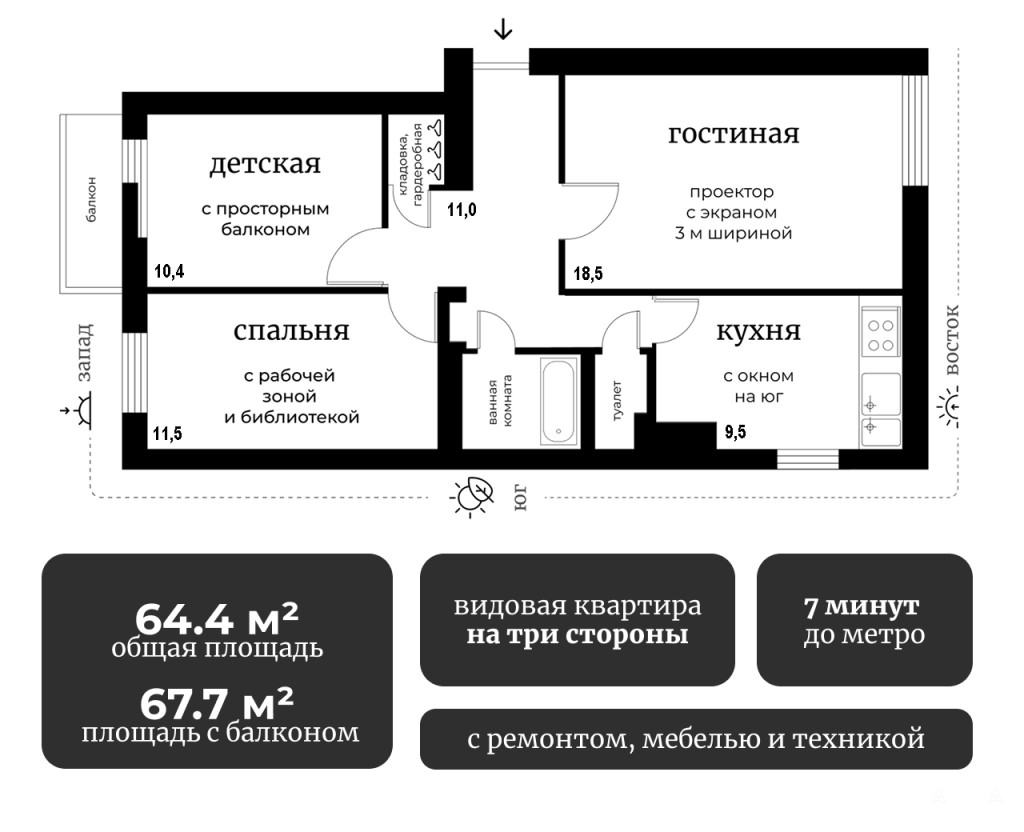 Для тех, кто ищет что-то особенное. Окна на три стороны: восток, юг, запад — панорамные виды, максимум солнечного света, проветривание без сквозняков. Умная планировка: квартира ощущается просторнее, чем по метрам. 7 минут прогулочным шагом до метро Московская.