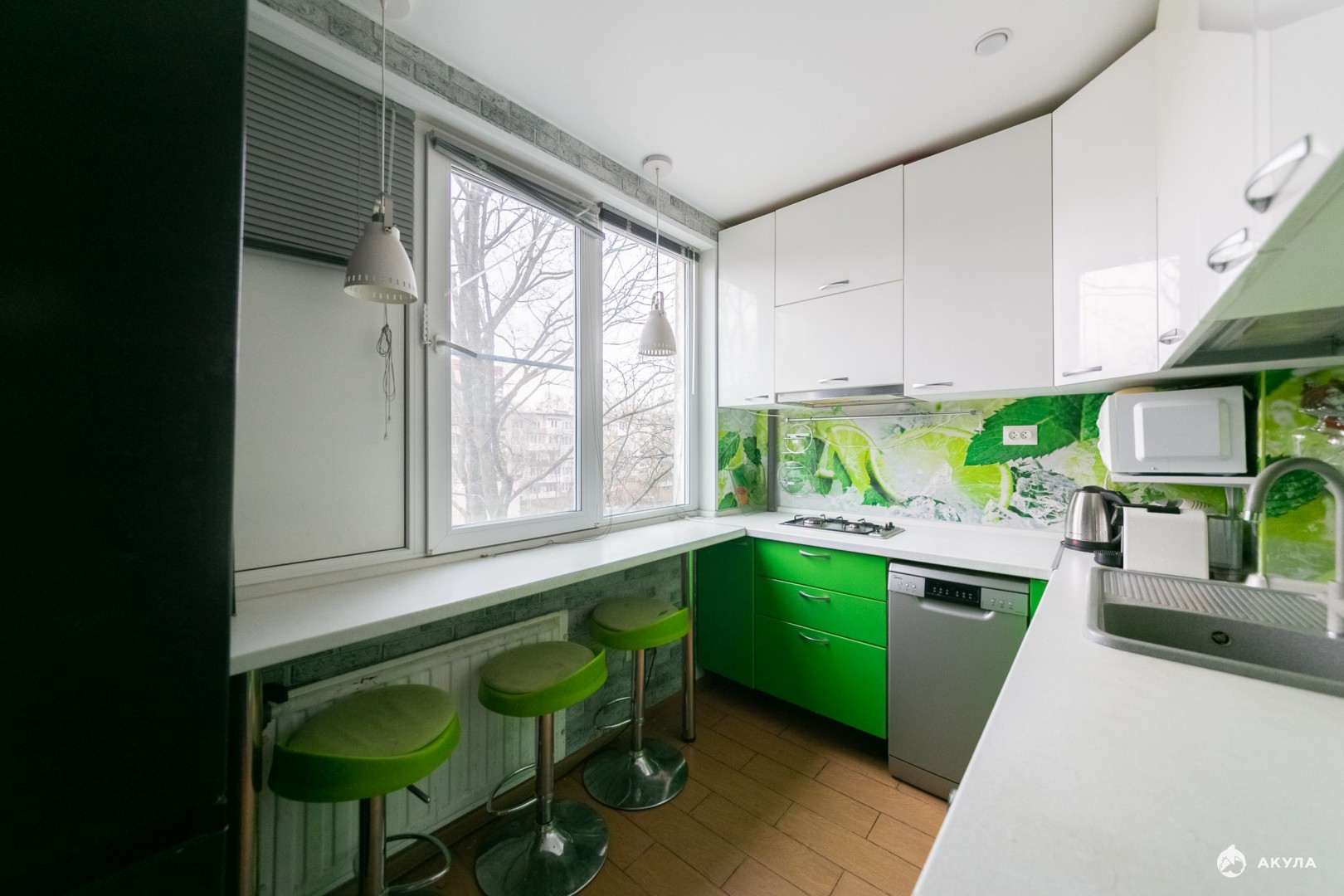Продается уютная квартира формата 4 евро в Санкт-Петербурге на Альпийском переулке, дом 7 во Фрунзенском районе. Общая площадь 60.1 кв. м, жилая — 40.6 кв. м, кухня — 7.4 кв. м. Квартира расположена на 4-м этаже 5-этажного панельного дома, построенного в 1965 году. Высота потолков 2.6 метра, окна выходят на три стороны. До станции метро "Проспект Славы" всего 15 минут пешком, 25 минут до станции метро «Международная».