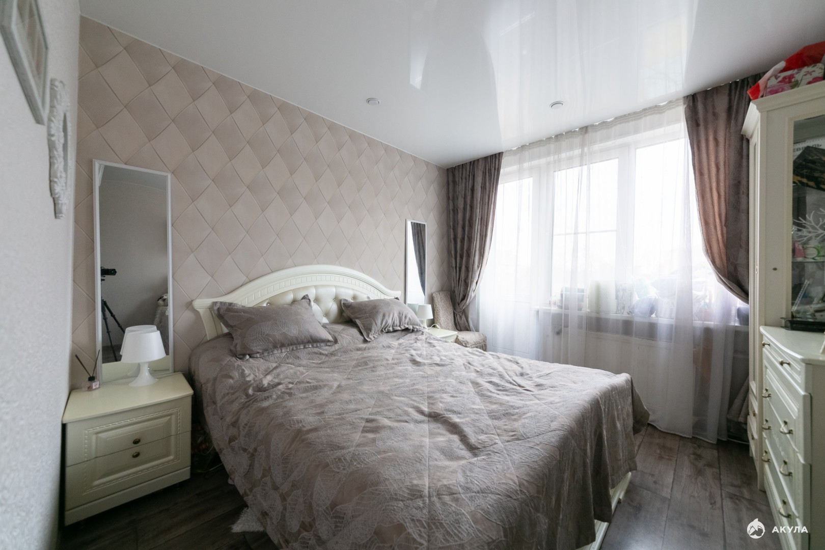 В квартире сделан косметический ремонт, что придает ей стильный и современный вид. Пространство организовано максимально функционально. В зоне прихожей выделена просторная гардеробная размером 5 кв. м, в которой установлены системы хранения. В комнатах и кухне качественная мебель и необходимая техника — все, что нужно для комфортной жизни. Санузел раздельный оформлен в светлых тонах, вся сантехника новая. Ванна требует ремонта - можно воплотить все свои идеи. В квартире есть два балкона площадью 11 кв. м. застекленный и 2.5 кв. м. открытый. На которых можно организовать дополнительные места хранения или зоны отдыха.