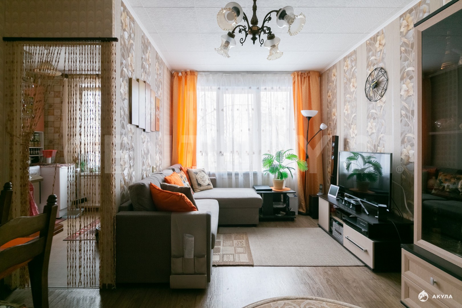 Квартира расположена на четвертом пятиэтажного дома, из окон видна зелень деревьев и слышно пение птиц.
