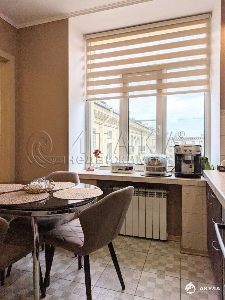 Двусторонняя, с высокими потолками и большими окнами: последний этаж, панорамный вид. Красивый квартал 50-х годов, сквозные проходы и проезды, детские площадки, фонтаны и обилие зелени.