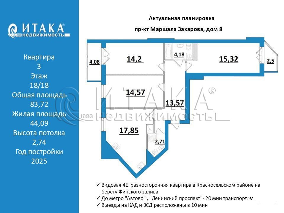 - Экологичный район с развитой инфраструктурой: школы, детские сады, кафе, супермаркеты — всё в шаговой доступности. Рядом Южно-Приморский парк. Выезды на КАД и ЗСД расположены в 10 мин. До метро "Автово" , "Ленинский проспект"- 20 мин транспортом.