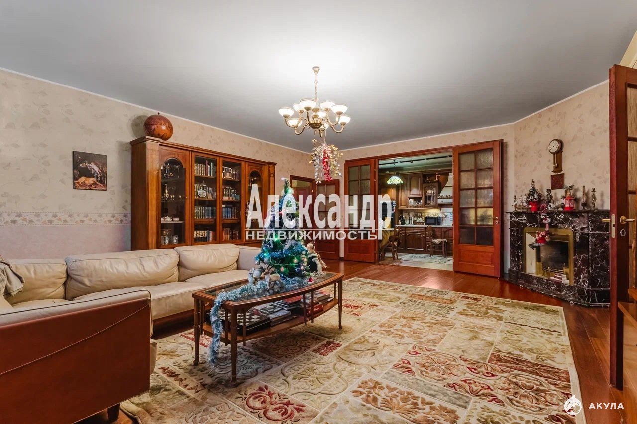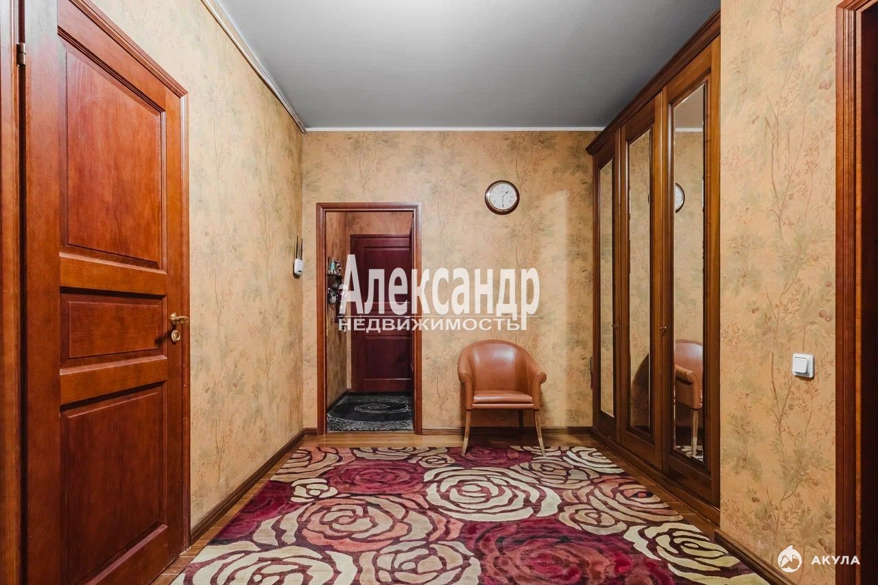 Квартира располагается в доме 2001 года постройки - Современная постройка в центре Санкт-Петербурга, на втором этаже, часть окон выходят на Манежную площадь. Площадь квартиры 167 кв. м, Три большие комнаты, кухня-гостиная, два санузла, большая ванная комната, две отдельных гардеробные, действующий камин.