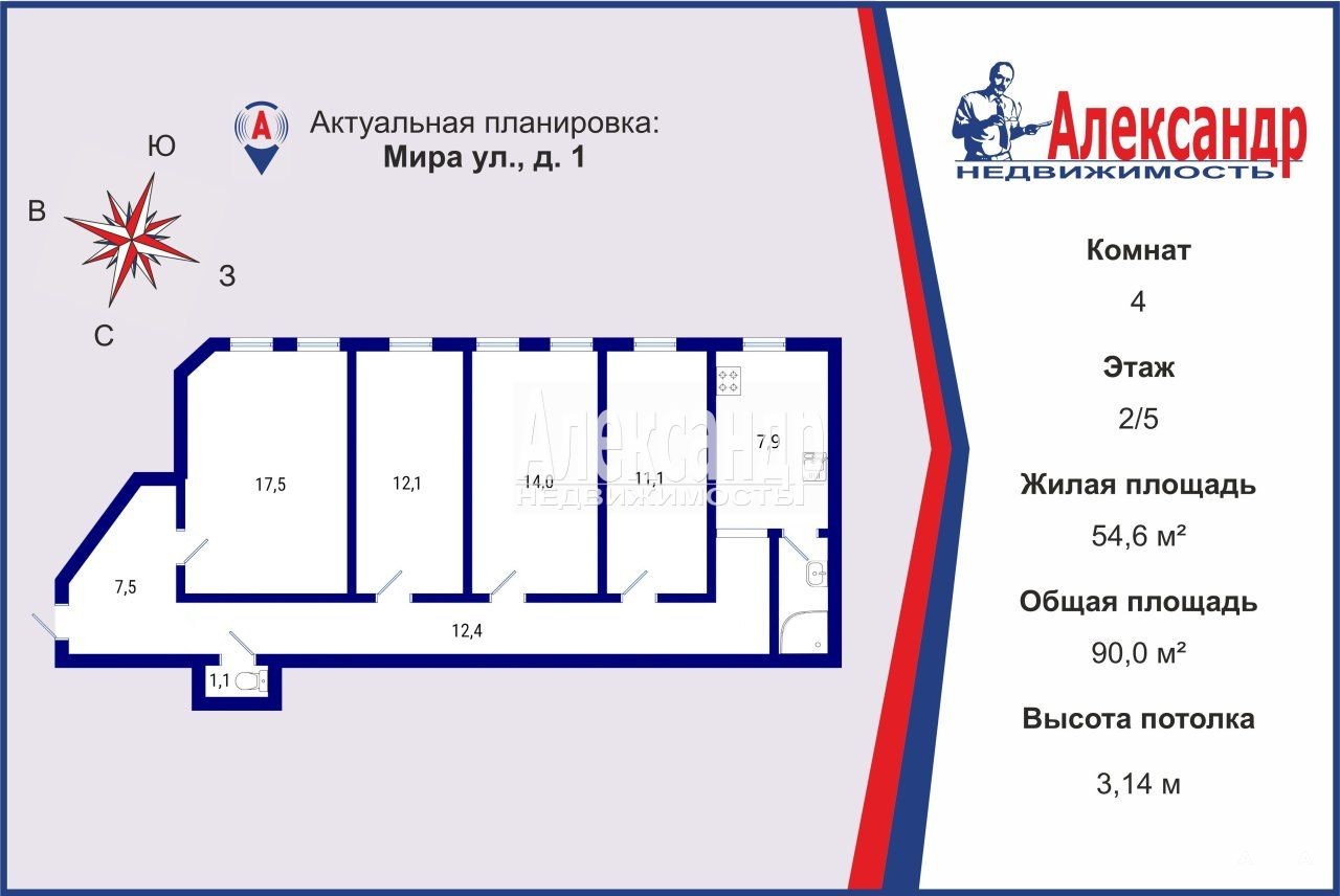 Комнаты отдельные: 17, 5 +12 + 14 + 11, 1 = 54, 6 кв.м - жилая площадь.