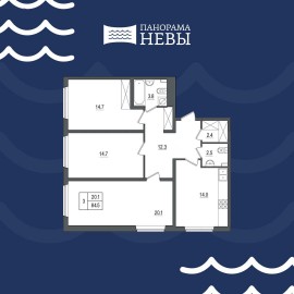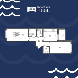 Уникальный комплекс с видом на Неву и собственной террасой. Квартира с предчистовой отделкой Характеристики квартиры: Общая площадь: 69.1 м² Кухня: 18.19 м² Санузел: 2.56 м²+4.05 м²(ванная с окном) Комнаты: 17.34 +11.11 м² Прихожая: 6.02 м² Терраса: 15.52 м² Лоджия: 3.69 м² Гардеробная:...