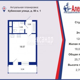 1705826 Для Вас предлагается просторная уютная студия, общ.пл. 25.72 кв. м., с современным ремонтом, высота потолков – 2, 75 м., на 12-м этаже 12-и эт. дома. Превосходная дорогостоящая отделка - для напольных покрытий использован кварцвинил светло-серого оттенка. Установлены входные...