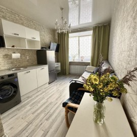 1-92232 Супер-квартира с планировкой 2ЕВРО с качественным , стильным ремонтом. Кухня -гостинная 20 м.кв.; Уютная спальня 10.5 м.кв; Лоджия просторная, застекленная; Прихожая , с большим шкафом; С/узел совмещенный; Квартира светлая, потолки 2.7 м.кв.; Метро, школы, магазины, банки,...