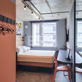 №341766 Предлагается светлая студия общей площадью 25, 05 м² на 11-м этаже. Пространство организовано функционально: жилая зона легко зонируется под спальное место и рабочий стол, а просторная лоджия с видом на улицу добавляет приватную площадку для утреннего кофе, чтения или...