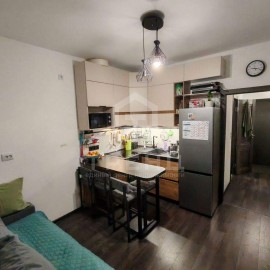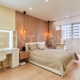Студия с индивидуальным продуманным дизайном полностью готова к проживанию, <br>оснащена кондиционером, всей необходимой мебелью и техникой. <br>Кухонный уголок закрывается сдвижной зеркальной панелью. <br>Площадь 28 кв.м. + балкон 4, 7 кв.м. <br>Мебель и техника...