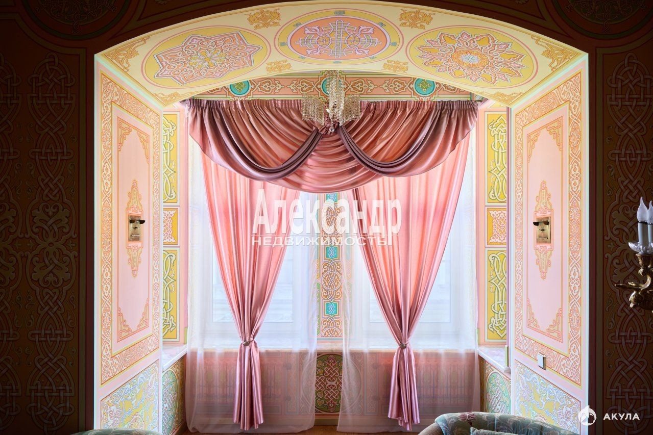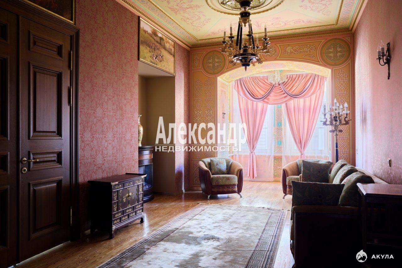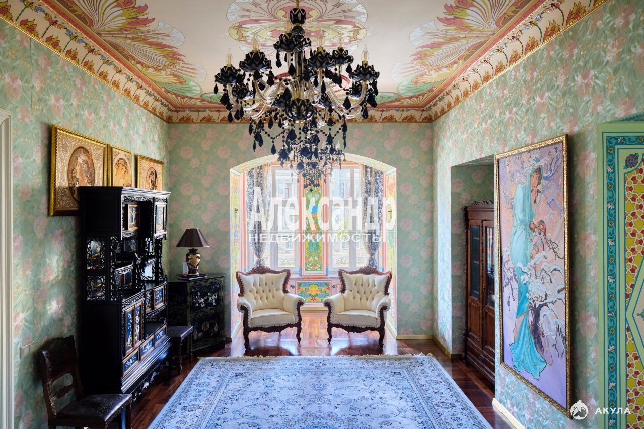 1705424 Уникальное предложение квартиры по местоположению, дому, отделке и интерьеру. Квартира 259, 2 кв.м., пятикомнатная, большая кухня-столовая, три санузла, кладовые, два входа с разных парадных. Готовая к проживанию, не требуется косметический ремонт. Квартира в таком исключительном месте и неповторимом виде будет семейной ценностью и реликвией. Находится в самом центре исторических и культурных мест Санкт-Петербурга, расположение дома на набережной реки Мойки усиливает ее привлекательность. Квартира видовая, из всех окон открывается замечательный вид на реку Мойку, на памятник Николаю I и площадь Исаакиевского собора, легендарный отель Астория, Синий и Красный мосты, роскошный ТД Эсдерс и Схейфальс. В минутах ходьбы Исаакиевский собор, Медный всадник, отель Англетер, Законодательное собрание Санкт-Петербурга, Зимний Дворец, Казанский собор, Спас на Крови, Государственный Эрмитаж, Новая Голландия. Квартира располагается в бывшем доходном доме Корпуса К. Б., построенном по проекту известного архитектора Гешвенда А.Р. Класс проекта - элитный дом, архитектура - эклектика. Собственником квартиры проведен капитальный ремонт, редкий случай в практике ремонта отдельной квартиры, когда новые бетонные перекрытия сделаны между соседними верхними и нижними этажами, заменены все инженерные коммуникации, произведена шумо-изоляция помещений. Городом проведен капитальный ремонт всего дома. Отделка и интерьер выполнены собственником квартиры в историческом санкт-петербургском дворцовом стиле, профессионально и качественно, каждая деталь продумана до мелочей. Роспись потолков, стен и проемов создавалась художниками Академии художеств им. И. Репина и Российской Академию Живописи, Ваяния и Зодчества Ильи Глазунова. Дубовый паркет, двери, оконные рамы и элементы интерьера изготовлены на заказ в санкт-петербургских мастерских. Отдельные элементы стен, проемов, эркеров и подоконники отделаны натуральным камнем оникс. Восстановленный действующий камин с аутентичными изразцами. Квартира обустроена предметами интерьера, соответствующие элементам отделки. Состояние квартиры - без износа, не требует вложений. В аренду не сдавалась, постоянно в квартире не проживали. Использовалась для приезда в отпуск или праздники. Продумана планировка квартиры, две отдельные спальни с санузлами, кабинет, зал-гостиная, второй кабинет или столовая, большая кухня, третий санузел, анфилада с продуманной системой проходов к комнатам. Три видовых эркера, высокие потолки. Квартира располагается на 2 этаже пятиэтажного дома, лифт. Вход в парадное с набережной реки Мойка и два раздельных - с парковки дома, расположенной в закрытом внутреннем дворике. Доступ к паковке через ворота с пультом. Чистые и опрятные парадные. На первом этаже офисные помещения с отдельным входом. Дом полностью заселен статусными жильцами. На этаже по 2 квартиры.