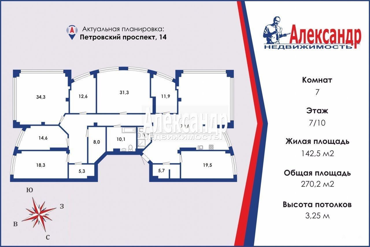1692983 Шикарная, просторная и очень светлая видовая квартира для большой семьи в ЖК премиум-класса `Дом на Петровском`.