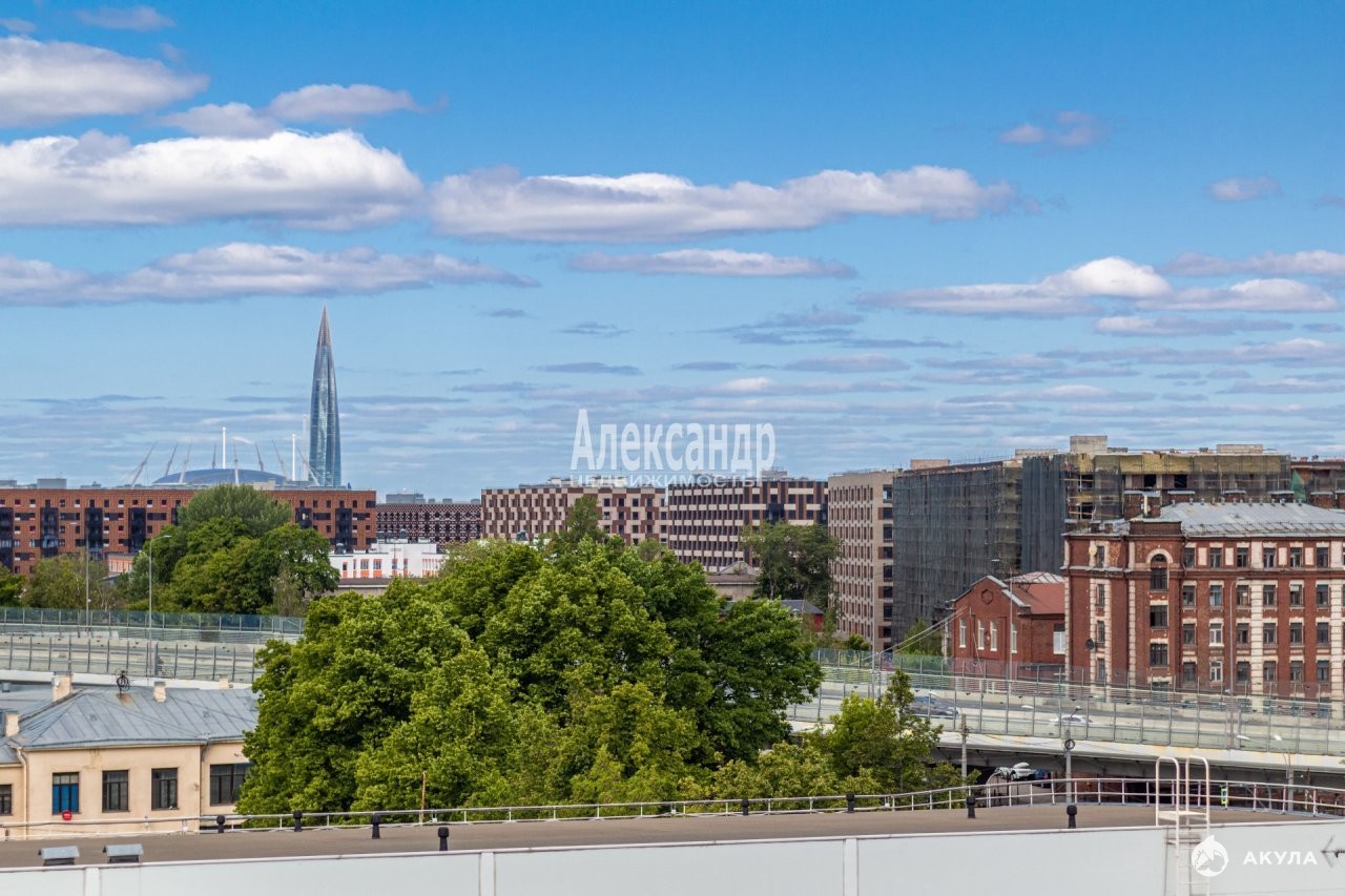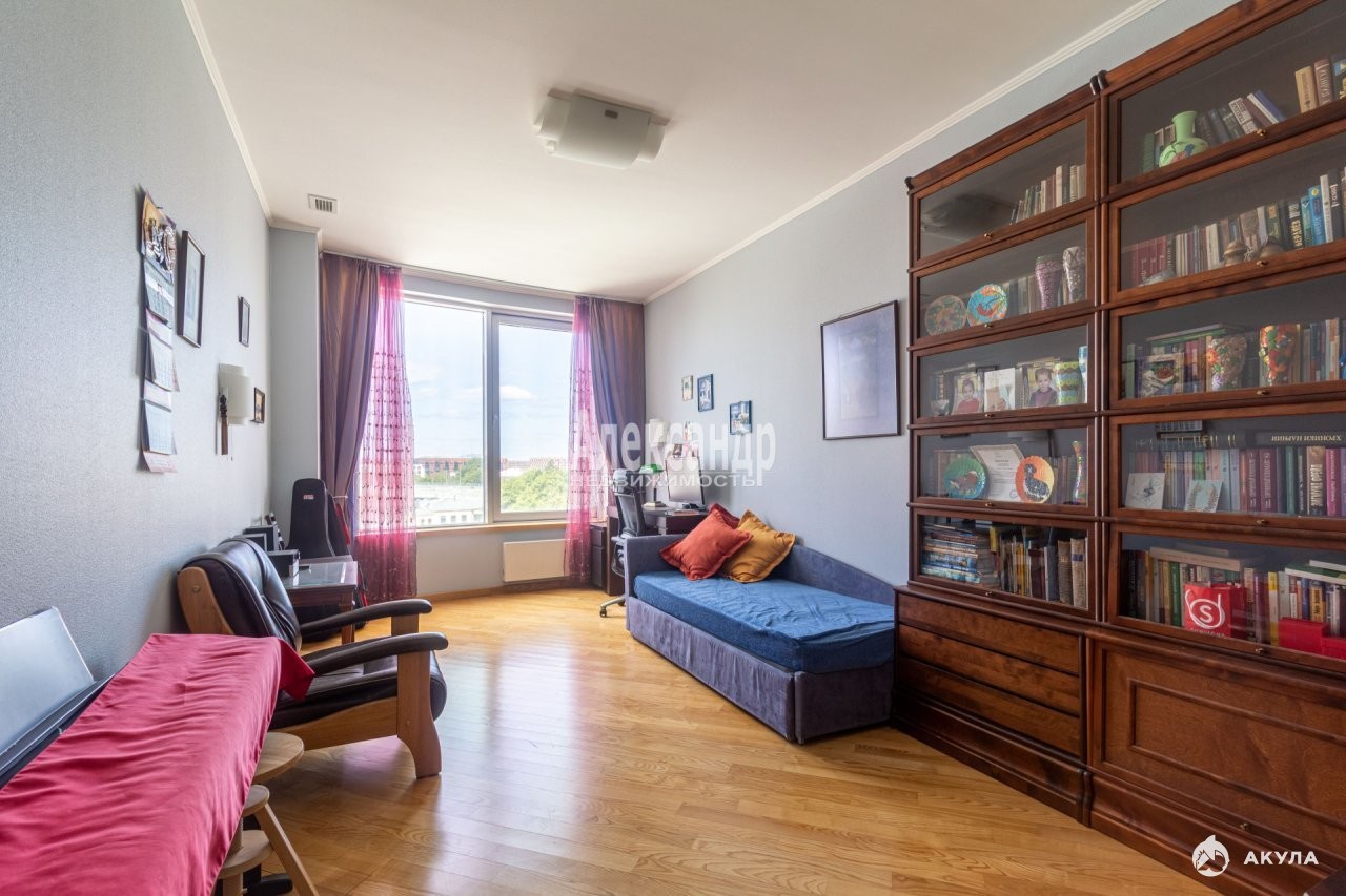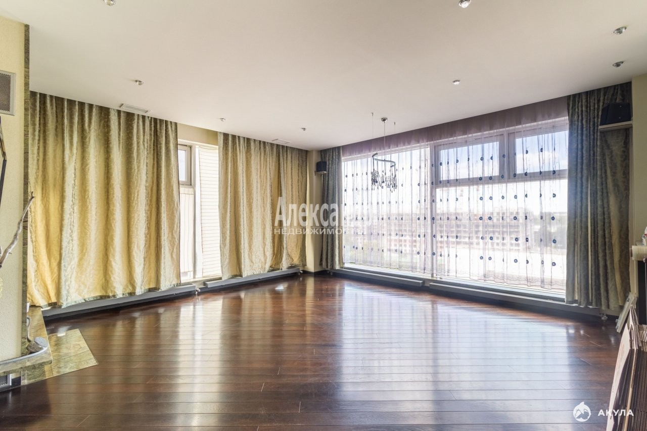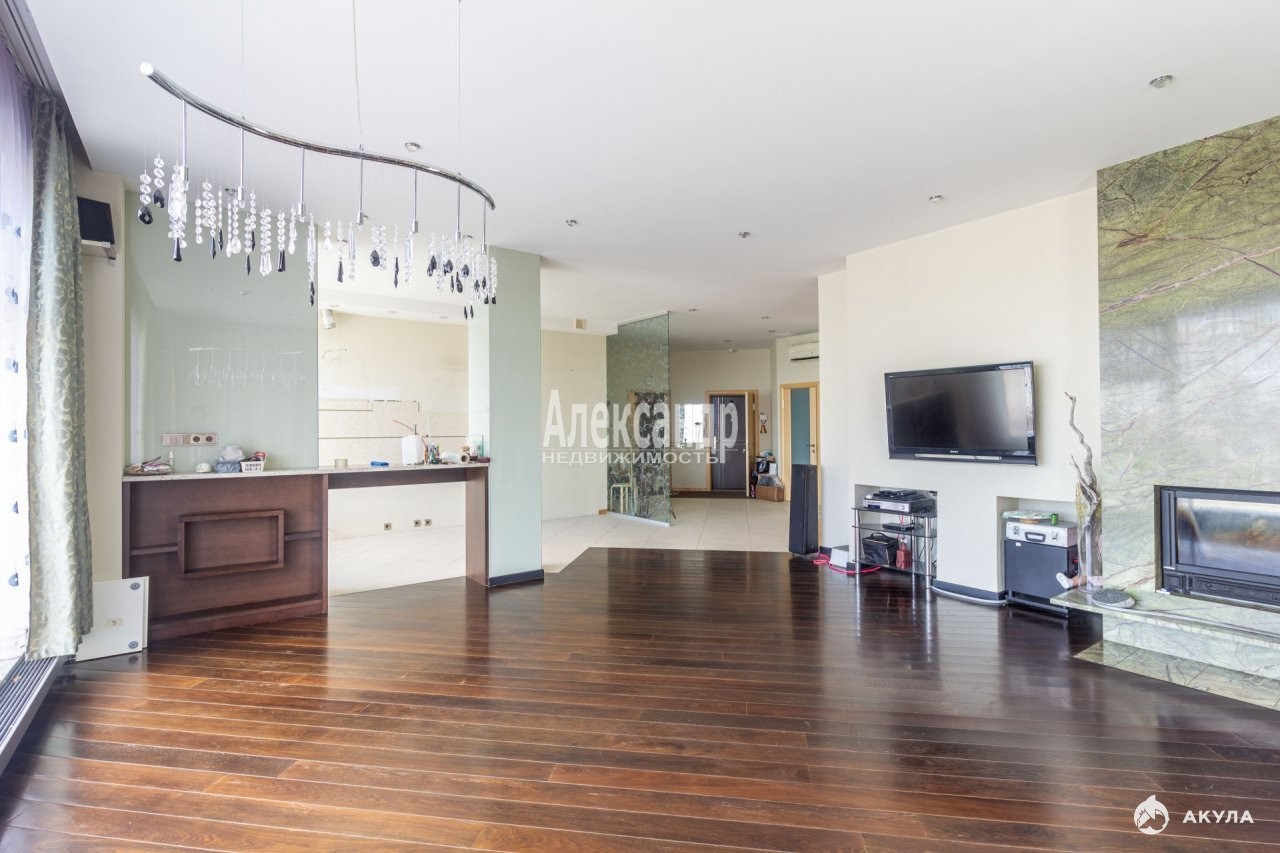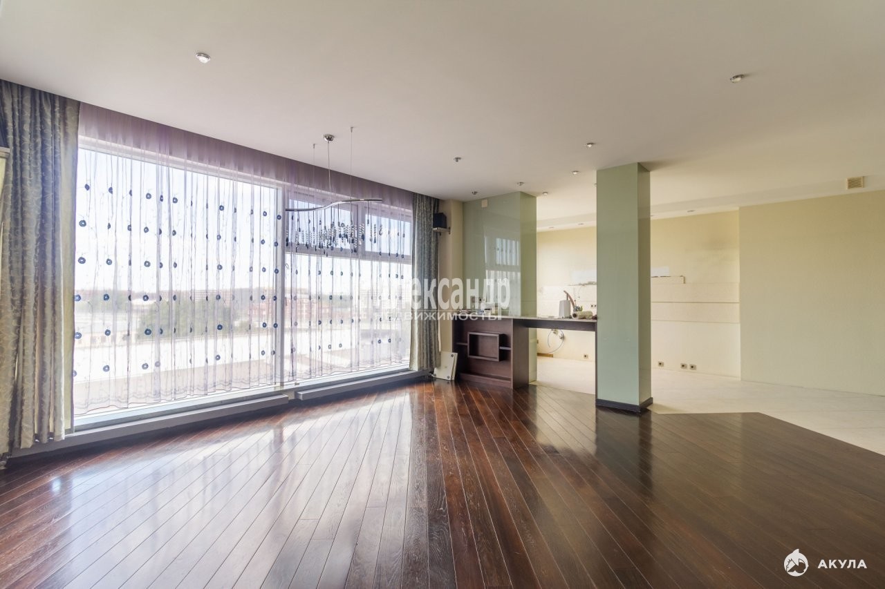 Кухня-гостиная 70 кв.м. с живописным панорамным видом на вантовый мост и залив, 4 спальни, 2 кабинета, вторая гостиная, которая может быть использована как игровая или тренажерный зал, 2 просторных санузла, 2 вместительных гардеробных, хозяйственная комната.