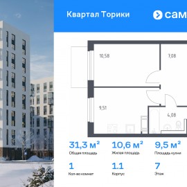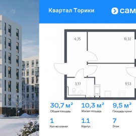 Строим кварталы для жизни с заботой о будущем. Предлагается 1-комнатная квартира комфорт-класса 31, 25 кв.м в корпусе 1.1 на 7 этаже, в ЖК «Квартал Торики» Квартира с предчистовой отделкой. Доступность дополнительных опций уточняйте у застройщика. Приобрести квартиру возможно...