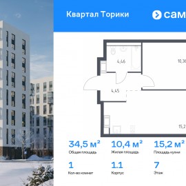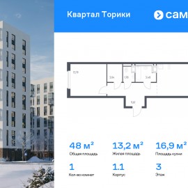 Строим кварталы для жизни с заботой о будущем. Предлагается 1-комнатная квартира комфорт-класса 34, 48 кв.м в корпусе 1.1 на 7 этаже, в ЖК «Квартал Торики» Квартира с предчистовой отделкой. Доступность дополнительных опций уточняйте у застройщика. Приобрести квартиру возможно...