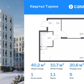 Строим кварталы для жизни с заботой о будущем. Предлагается 1-комнатная квартира комфорт-класса 40, 21 кв.м в корпусе 1.1 на 5 этаже, в ЖК «Квартал Торики» Квартира с чистовой отделкой. Доступность дополнительных опций уточняйте у застройщика. Приобрести квартиру возможно по...